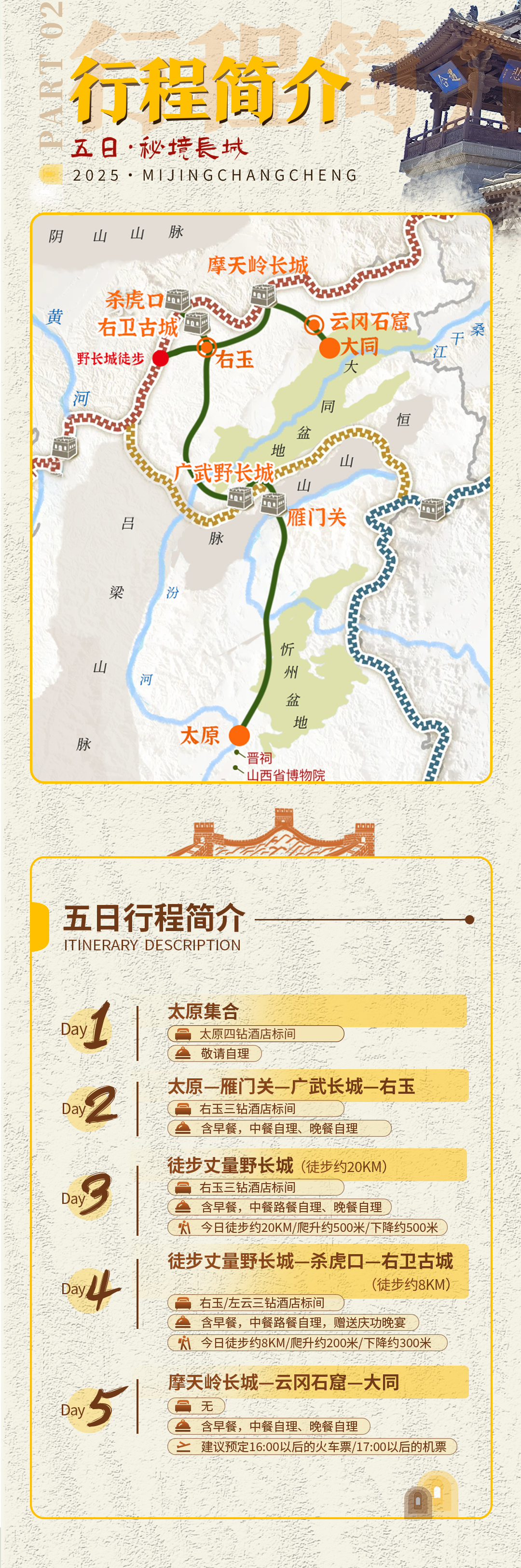 3、雁門關(guān)景區(qū)門票+車票,云岡石窟門票(憑有效證件產(chǎn)生門票減免的,退還相關(guān)費用);