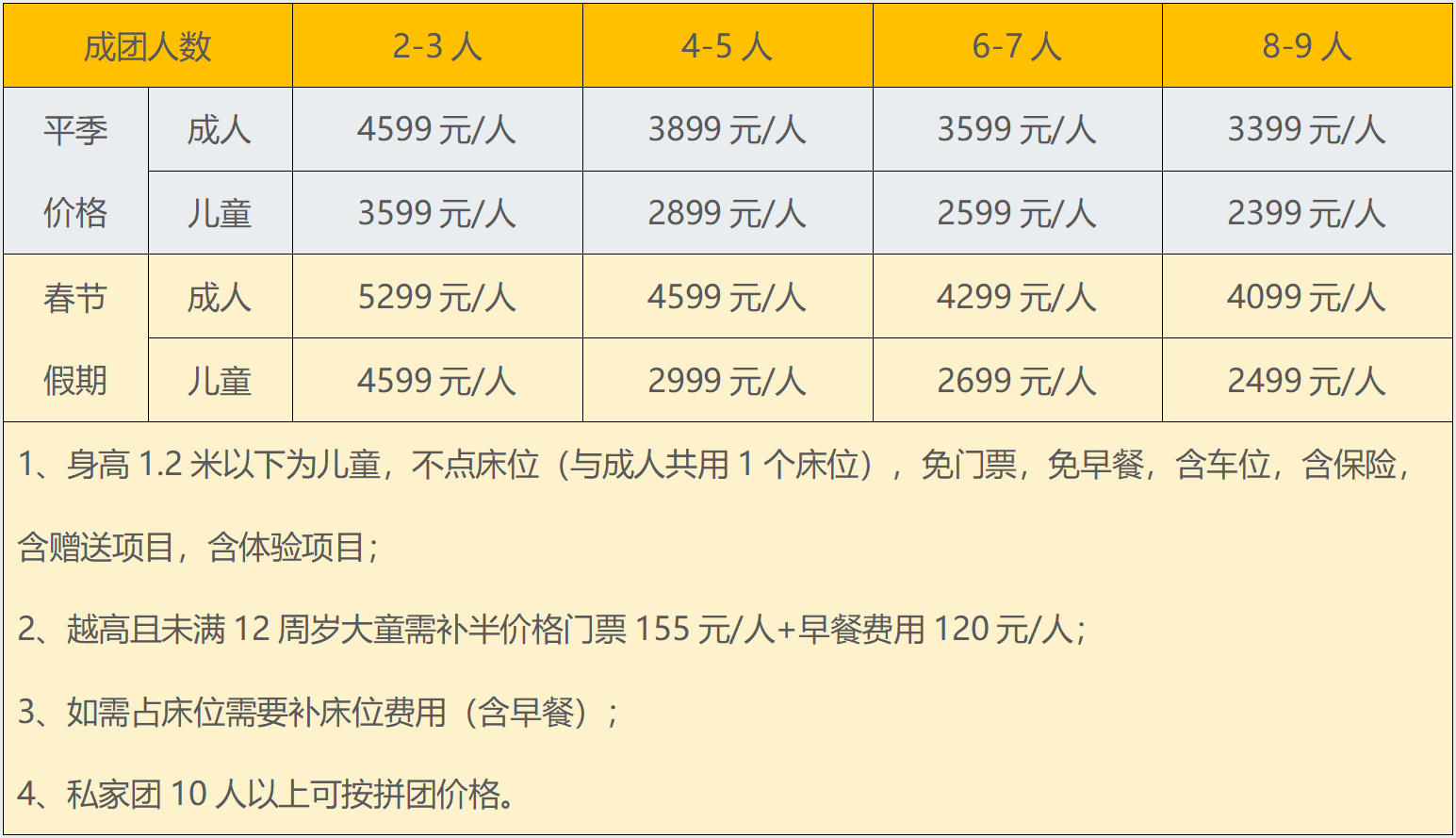 成人:3299元/人,兒童:2299元/人