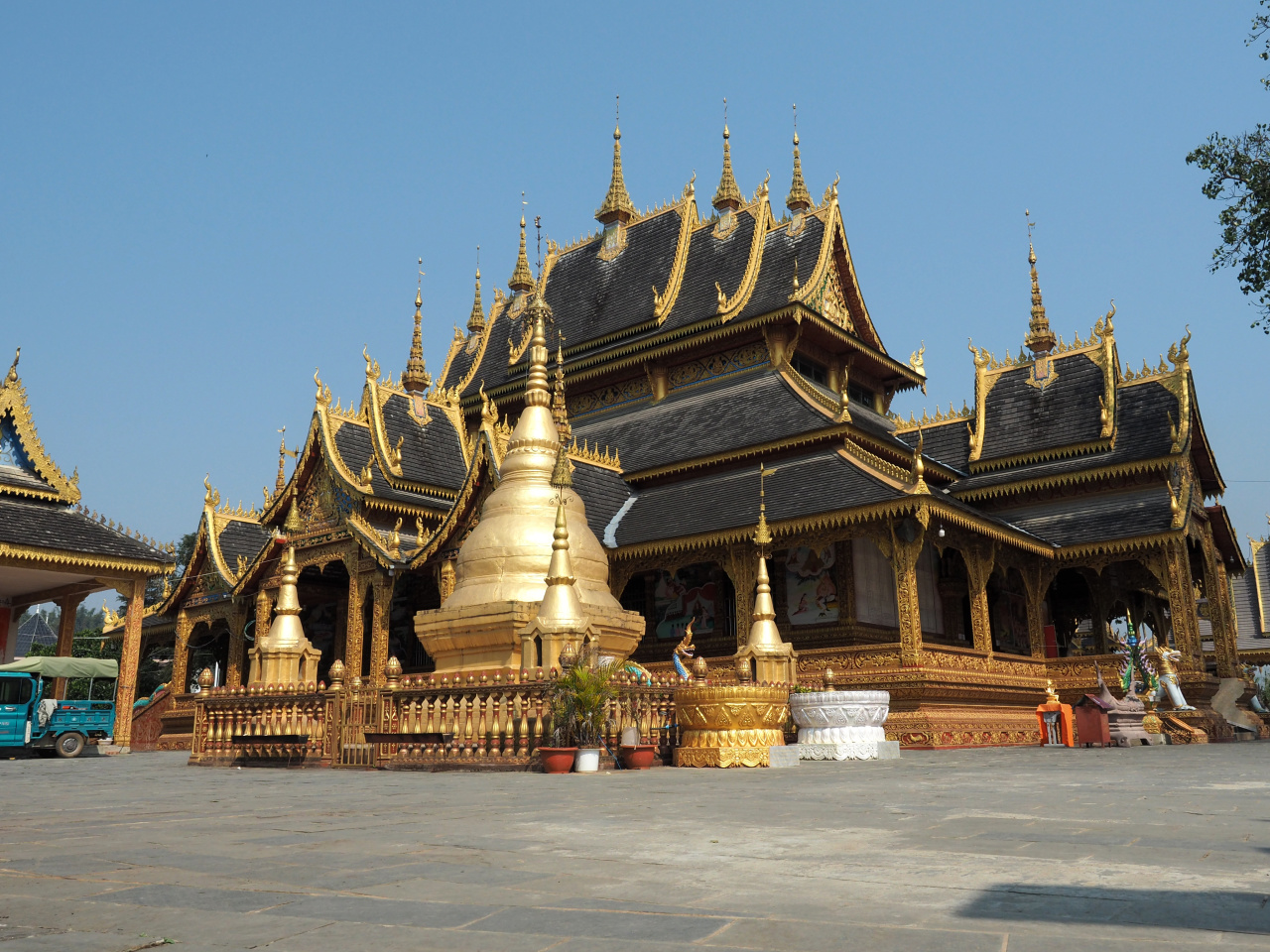 參觀結(jié)束后我們繼續(xù)前往特色的傣族古鎮(zhèn)【娜允古鎮(zhèn)】,迄今約700多年歷史的古鎮(zhèn)。古鎮(zhèn)內(nèi)的孟連宣撫司署位于上城的高處,上、中城佛寺也巍然屹立在宣撫司署的附近。占地一萬多平方米宣撫司署是云南清代土司的衙署,也是云南18座土司衙門中保存Zui完好的一座。與土司衙門的富麗堂皇形成對比的是清靜悠閑的佛寺,大殿的墻壁上畫著艷麗的壁畫,記載的是傣族的歷史傳說。接著我們途經(jīng)孟連大金塔打卡,下午適時返回瀾滄縣城入住酒店。