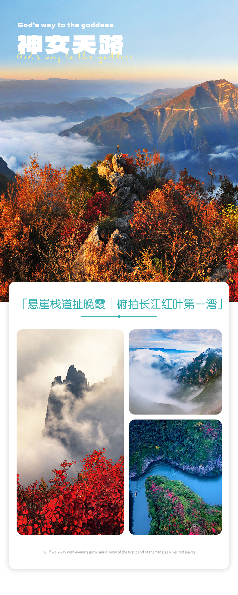 我們將乘車前往巫山神女天路,一路乘坐景交車穿越巫峽,欣賞“曾經滄海難為水,除卻巫山不是云”的壯觀景象,一路紅葉相伴,美不勝收,這里也被驢友評為長江上最美的三峽畫廊。