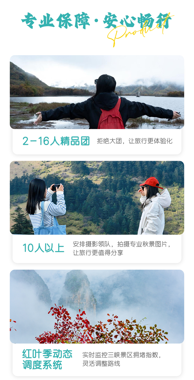 3. 本產品屬于秋季產品,秋景確定時間不確定的,正常是11月份秋景,但是也有提前或延后情況,游玩時請合理對待實際景色;