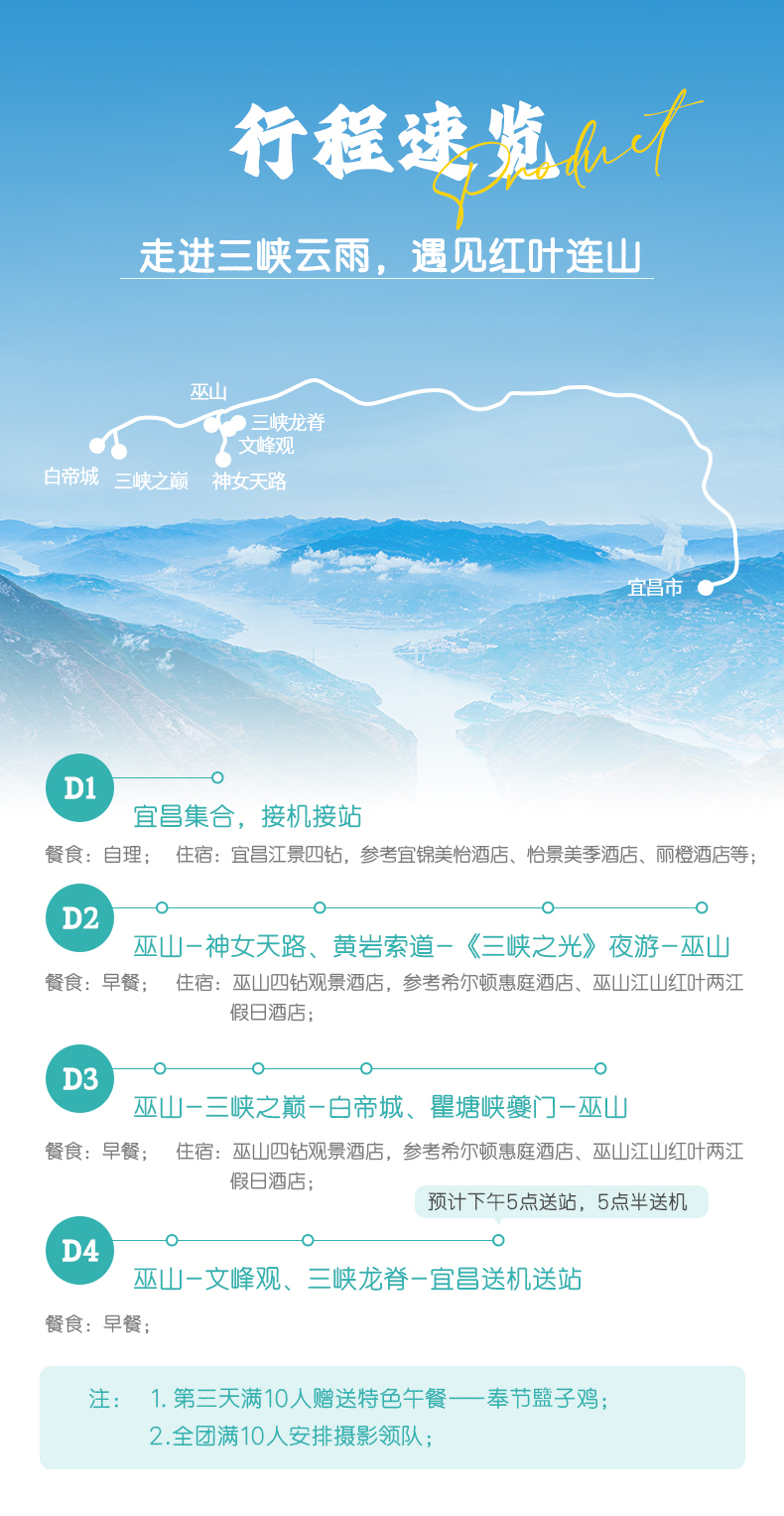 2. 由于此產品游覽區(qū)域屬于巫山、奉節(jié),經濟發(fā)展緩慢,物資匱乏,旅游資源條件有限,無法與一二線城市旅游資源比較,如遇相關問題敬請諒解