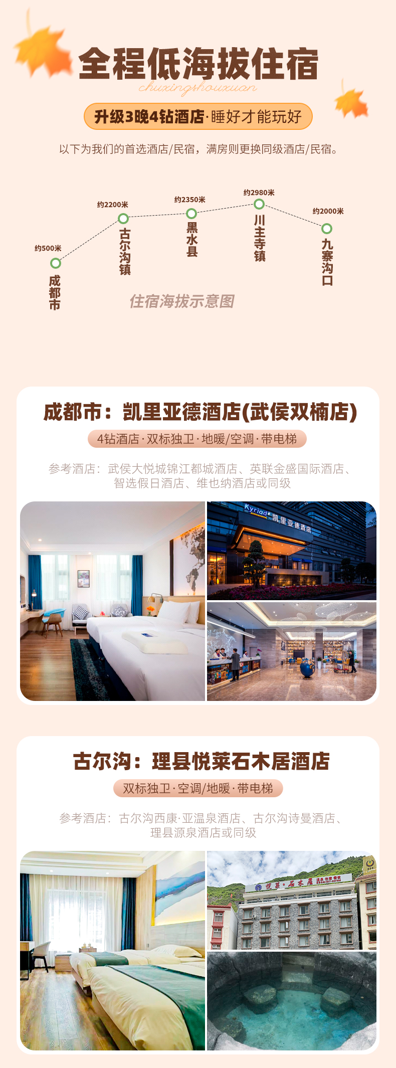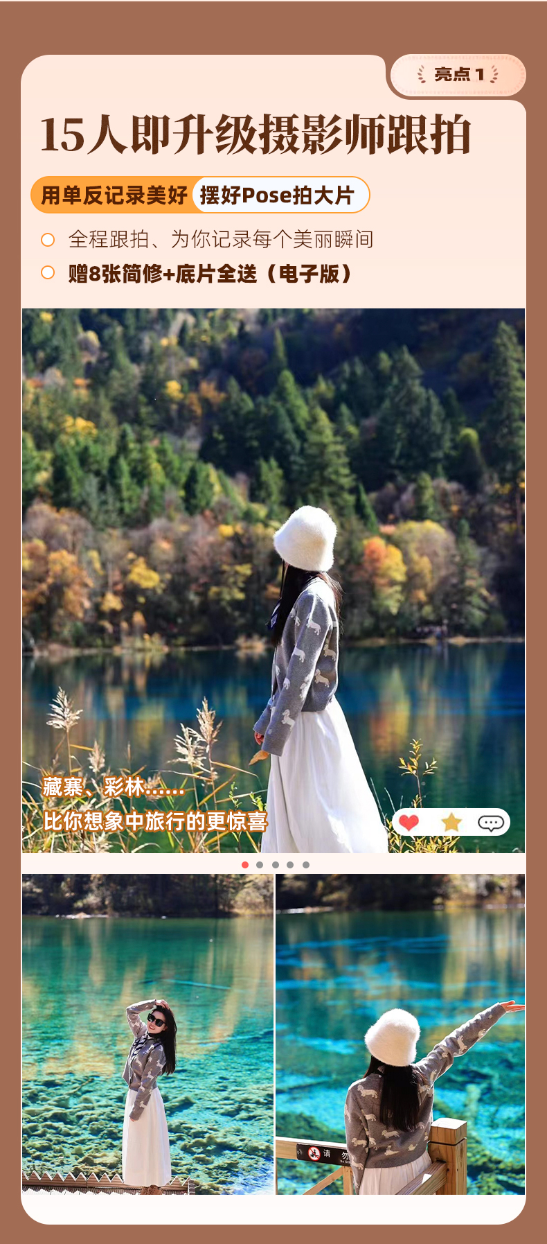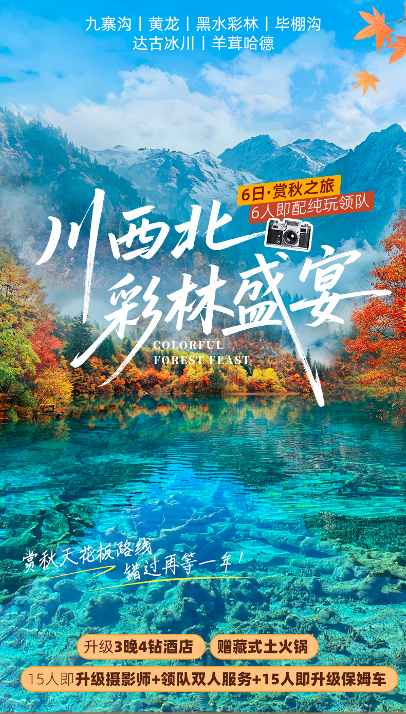 15人即升級攝影師+領(lǐng)隊(duì)雙人服務(wù) · 升級3晚4鉆酒店 · 九寨溝+黃龍+黑水彩林+畢棚溝+達(dá)古冰川+羊茸哈德6日深度游