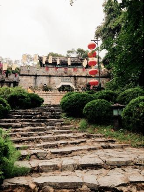 圓明新園仿古長城,其中有3個烽火臺,拾級而上到達觀景平臺,可俯瞰圓明新園,然后與景山道匯合。